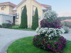 28 сотках безупречной территории, с ухоженным ландшафтом, эксклюзивными растениями, большим количеством хвойников и туй, искусно высаженных заботливыми руками специалистов.