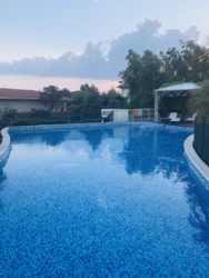 У бассейна можно комфортно провести время, не только плавая в воде, но и лежа на шезлонге в тени деревьев или загорая на солнышке, а возможно - читая литературу в тишине альтанки, расположенной недалеко в зоне отдыха!