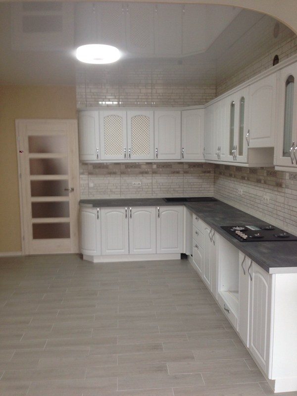 Просторная и светлая кухня с новой встроенной мебелью и техникой.